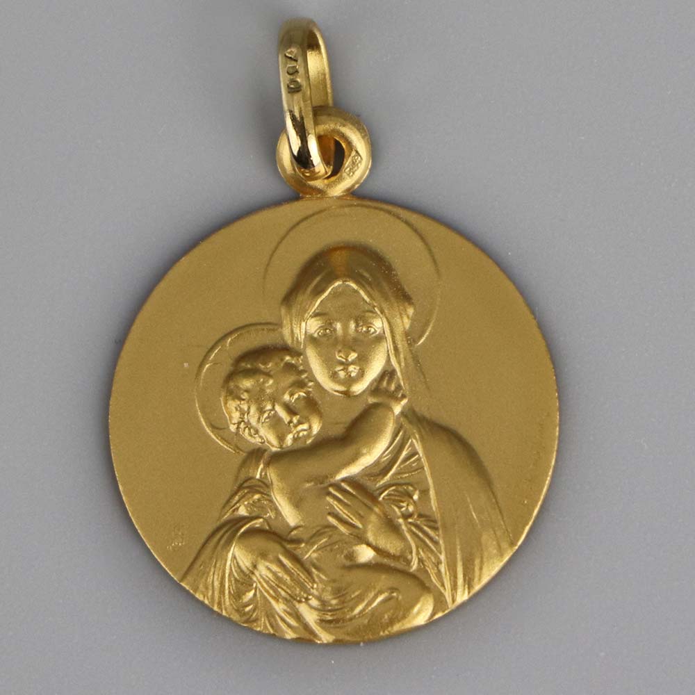 Médaille de baptême Vierge à l’enfant de face. Or 18 carats (2.99 g. Ø 18 mm).