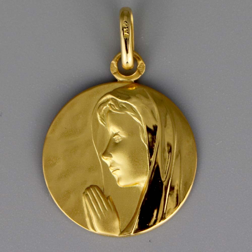 Médaille de baptême Vierge en prière. Or 18 carats (3.26 g. Ø 18 mm).