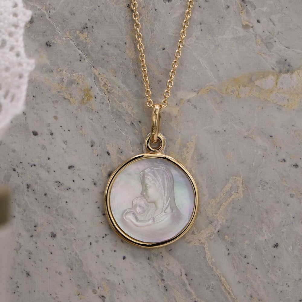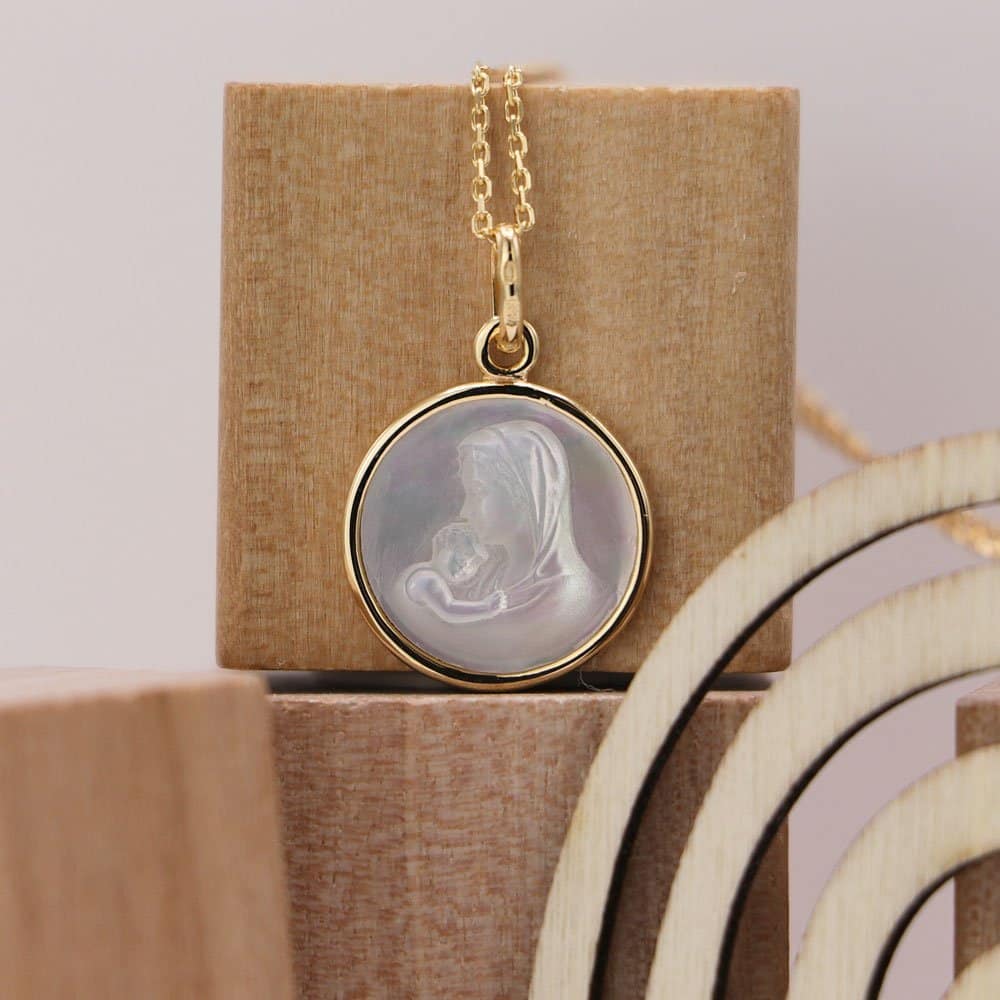 Soyez le premier à laisser votre avis sur “Médaille de baptême Vierge Marie à l’enfant en Or jaune 18 carats et nacre”