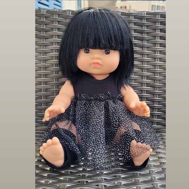 Voici Jade ! C’est est une poupée ravissante avec un joli petit visage très expressif ! Elle est fabriquée en vinyle doux et a de beaux cheveux à coiffer ! Elle peut aussi être baignée et elle sent bon la vanille !!!