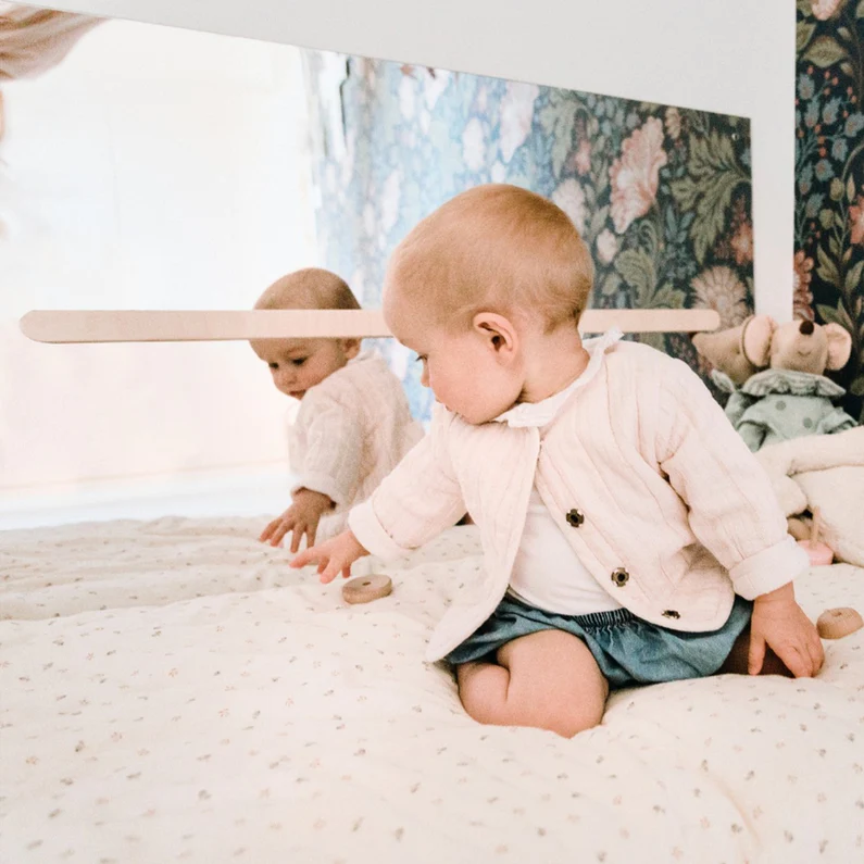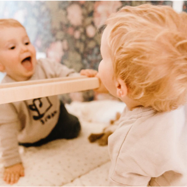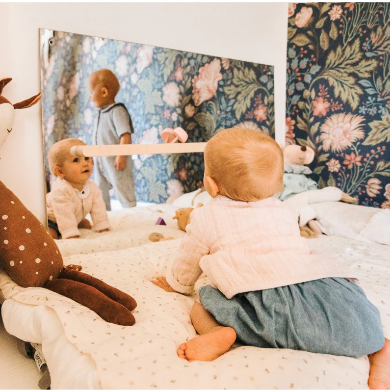 Lorsque vous avez besoin de vaquer à vos occupations, installez votre bébé à côté du miroir Montessori mural. Il pourra ainsi vous observer, découvrir son propre corps et développer sa motricité tout en restant à un endroit sécurisé.