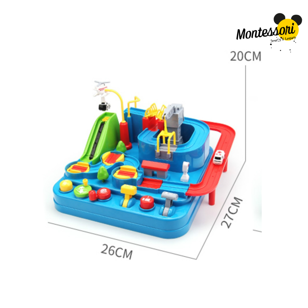Votre enfant devra prendre le contrôle de ce mini circuit et effectuer une dizaine de petites actions pour déplacer la voiture d’une plateforme à l’autre. Il suffit d’assembler le circuit de votre choix, pas besoin de piles. Le temps d’installation est estimé à 5 minutes. 4 petites voitures, ascenseurs, parking et autres tâches divertiront votre enfant pendant des heures. Tous les matériaux qui composent ce circuit sont sûrs, les côtés sont arrondis et toutes les pièces sont intégrées pour que votre enfant ne se blesse pas. De plus, notre jeu Montessori est à l’épreuve des chutes.