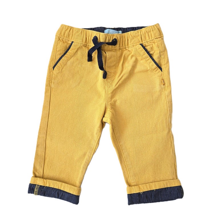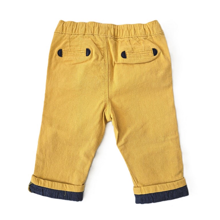 Pantalon bébé garçon 6 Mois OBAIBI Pantalon toile jaune et bleu marine avec revers Taille réglable et liens
