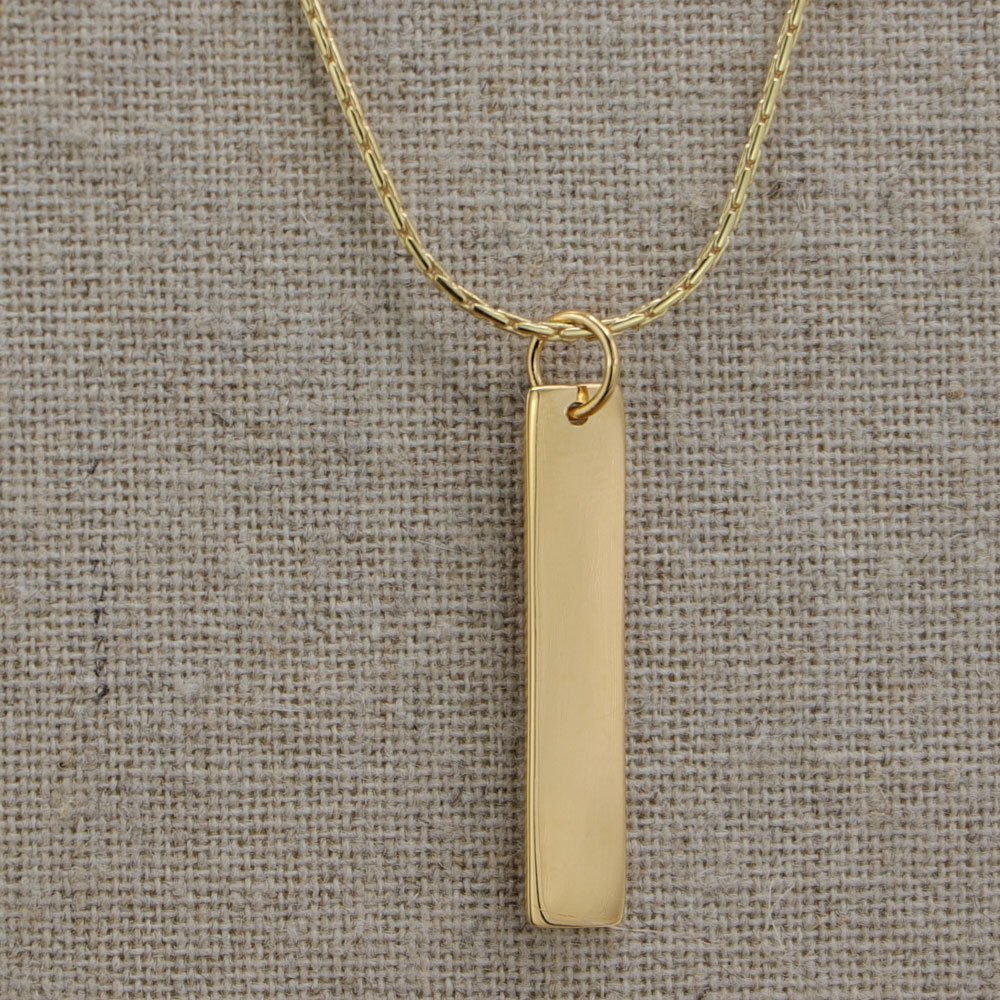 Cet élégant petit pendentif en Vermeil, constitué d’une plaque allongée rectangulaire, pourra se porter sur la chaine en argent doré de votre choix pour une combinaison unique. Sobre et intemporel, il pourra être personnalisé par la gravure et ainsi surprendre vos proches par le message qu’il leur délivrera.