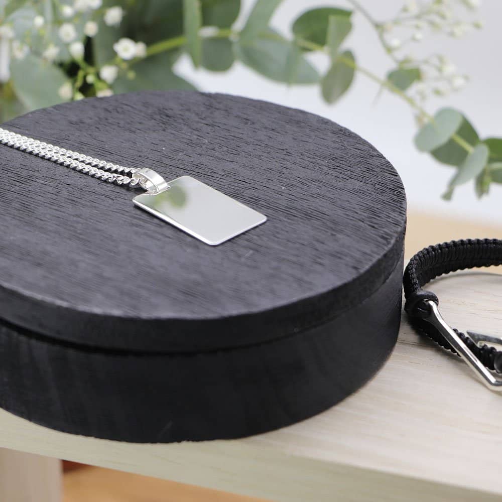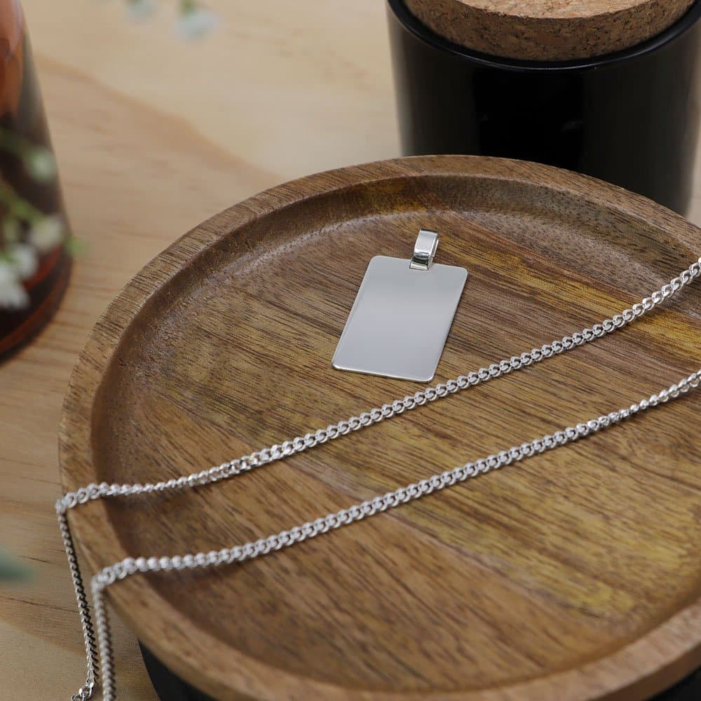 Cet élégant pendentif en Argent massif, constitué d’une plaque allongée rectangulaire, pourra se porter sur la chaine en argent massif de votre choix pour une combinaison unique. Sobre et intemporel, il pourra être personnalisé par la gravure et ainsi surprendre vos proches.
