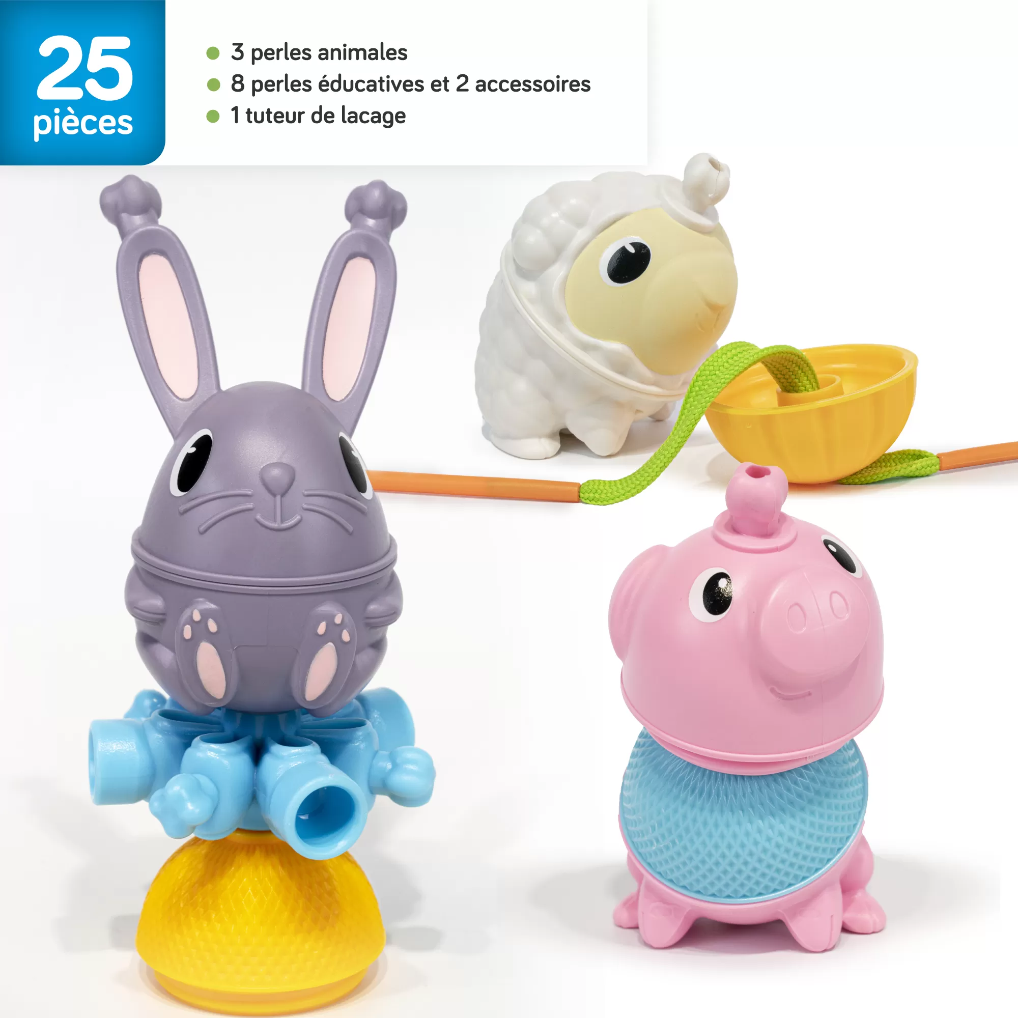 PERLES DE MOTRICITé LALABOOM – ANIMAUX DE LA FERME – 25 PIÈCES