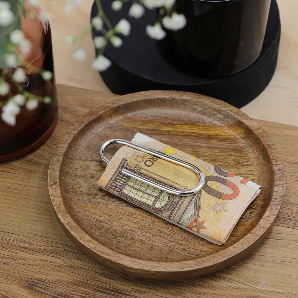 Cette élégante pince à billets en forme de trombone vous permettra de maintenir tous vos billets ensembles. Elle saura aussi se rendre indispensable au bureau pour grouper vos documents importants. Au design sobre et épuré, elle s’accordera aussi bien dans les univers masculins que féminins.