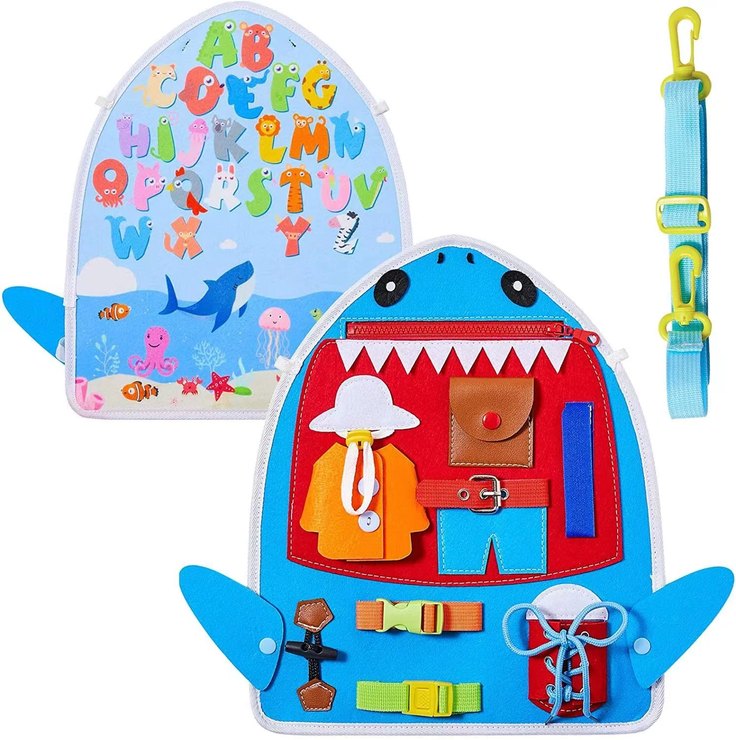 Cette planche est confectionnée avec des matériaux durables et sûrs pour votre enfant. Elle comporte une variété d’éléments ludiques et éducatifs tels que des fermetures Éclair, des lacets, des boutons, des lacets, et bien plus encore.