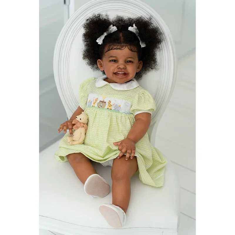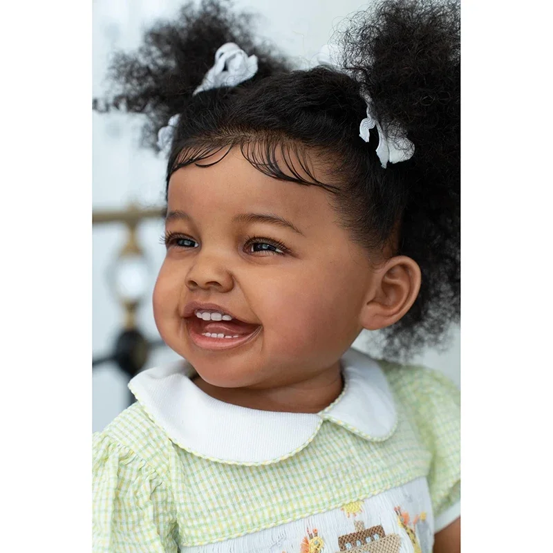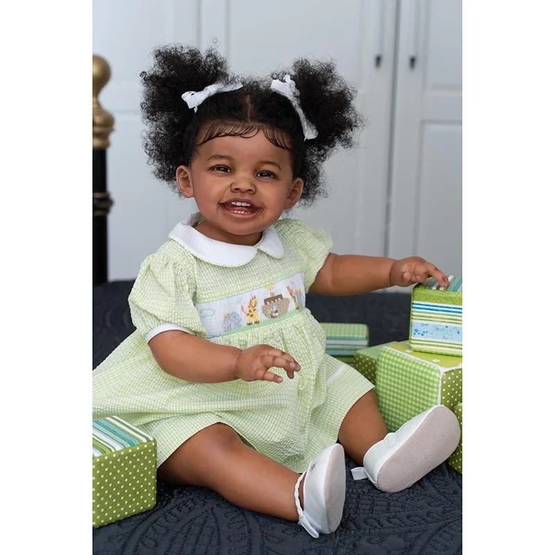 Fatoumata, une magnifique poupée reborn fille de 60 cm, ravit par son apparence réaliste et sa douceur. Avec sa peau méticuleusement peinte en plusieurs couches, ses cheveux implantés à la main et son regard pétillant, elle deviendra rapidement une véritable compagne pour les enfants ou un joyau dans votre collection. Laissez-vous séduire par son sourire chaleureux et son charme unique.