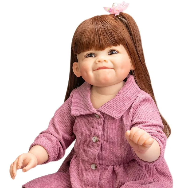 Laissez-vous charmer par Marion, une poupée reborn fille au charisme irrésistible et aux longs cheveux auburn avec une frange à tomber !