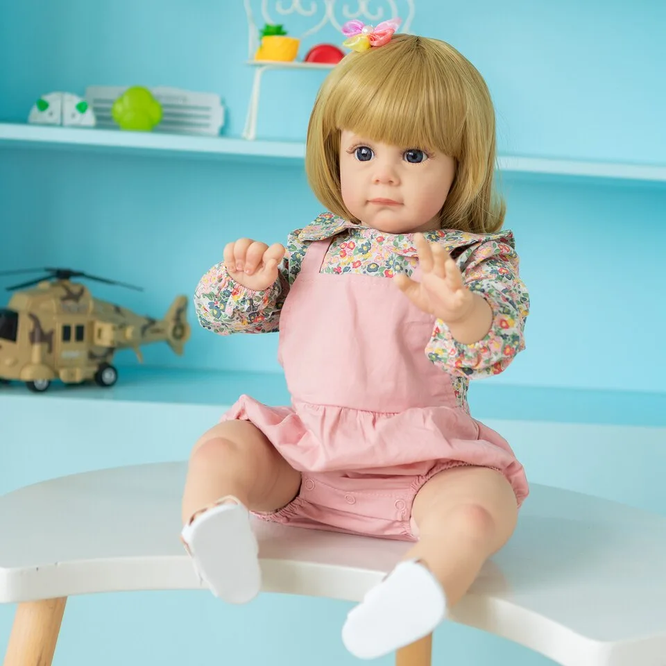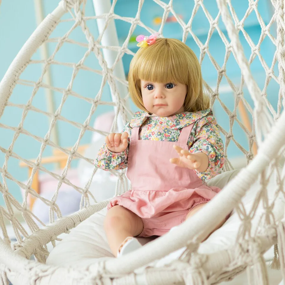 Myriam est une poupée reborn qui incarne l’élégance et la douceur. Avec sa coiffure de cheveux blonds vénitiens et sa frange bien coupée, elle est un véritable bijou visuel. Sa robe colorée ajoute une touche de gaieté à son allure, faisant d’elle une compagne parfaite pour les petites filles et les petits garçons qui rêvent d’une poupée reborn blonde et resplendissante.