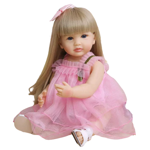 - Matière : Son corps est entièrement confectionné à partir d’un mélange de silicone et de vinyle, offrant une texture douce, réaliste et flexible. Cette poupée peut même être baignée en toute tranquillité.