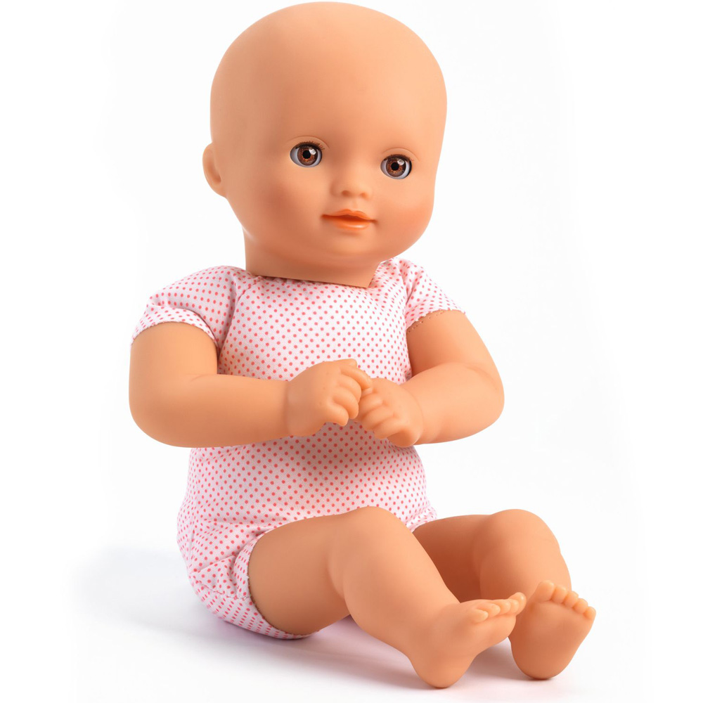 Voici Flora ! Un poupon facile à manipuler pour les petites mains ! Son corps est souple et ses yeux se ferment lorsqu’il est couché sur le dos. Il est prêt à être adopté par un « mini-parent » qui le câlinera et le soignera bien !
