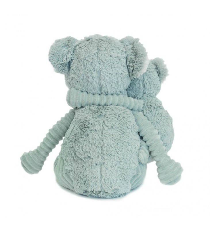 Ce sympathique koala menthe en velours côtelé, qui porte son bébé, est idéal pour accompagner votre enfant dès la naissance ! Il sera de toutes les expéditions, de toutes les aventures et de toutes les découvertes ! Les petits chagrins, les rires et les joies n’auront aucun secret pour lui ! Un p’tit « potos » rassurant et apaisant pour de longues siestes et de bonnes nuits remplies de jolis rêves !