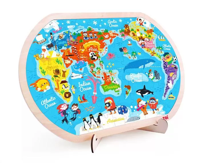 Ce super puzzle très coloré est adoré des enfants les plus curieux. En effet, avec ses couleurs, tous ses motifs tous et ses animaux, il permet aux enfants d’apprendre beaucoup de choses sur la géographie et la belle planète sur laquelle nous vivons.