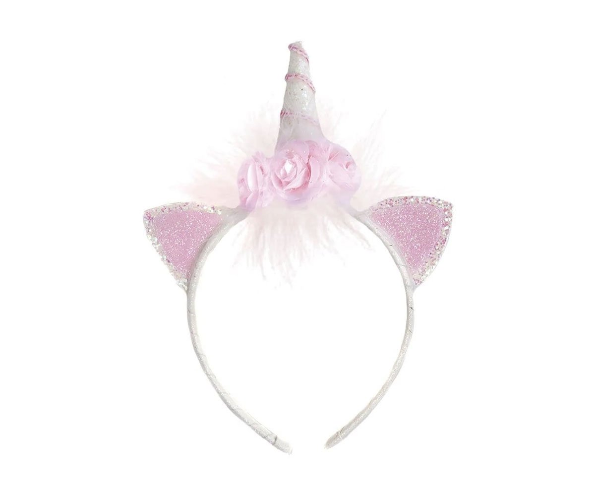 Cet accessoire féérique est idéal pour les petites coquettes fans de licornes ! Les petites oreilles roses et la corne sont pailletées et scintillantes, et il est décoré de fleurs ravissantes posées sur de délicates plumes roses ! Hyper joli !!!
