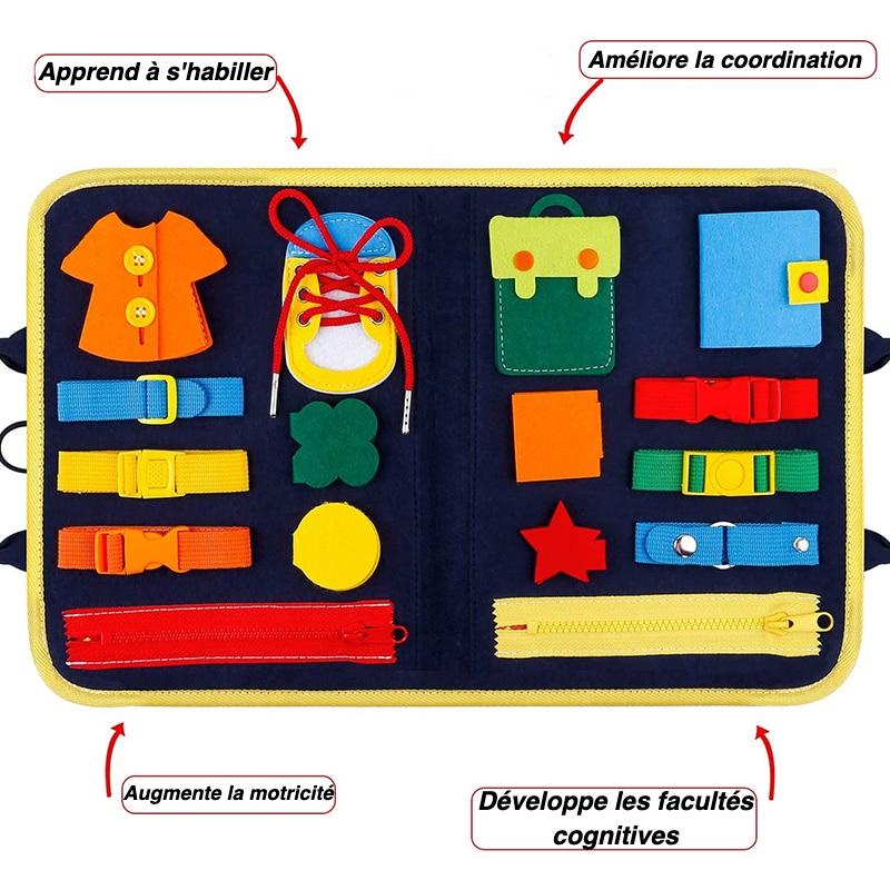 Jouet Montessori ® a sélectionné pour vous ce tableau d’activité “Busy Board” Montessori.