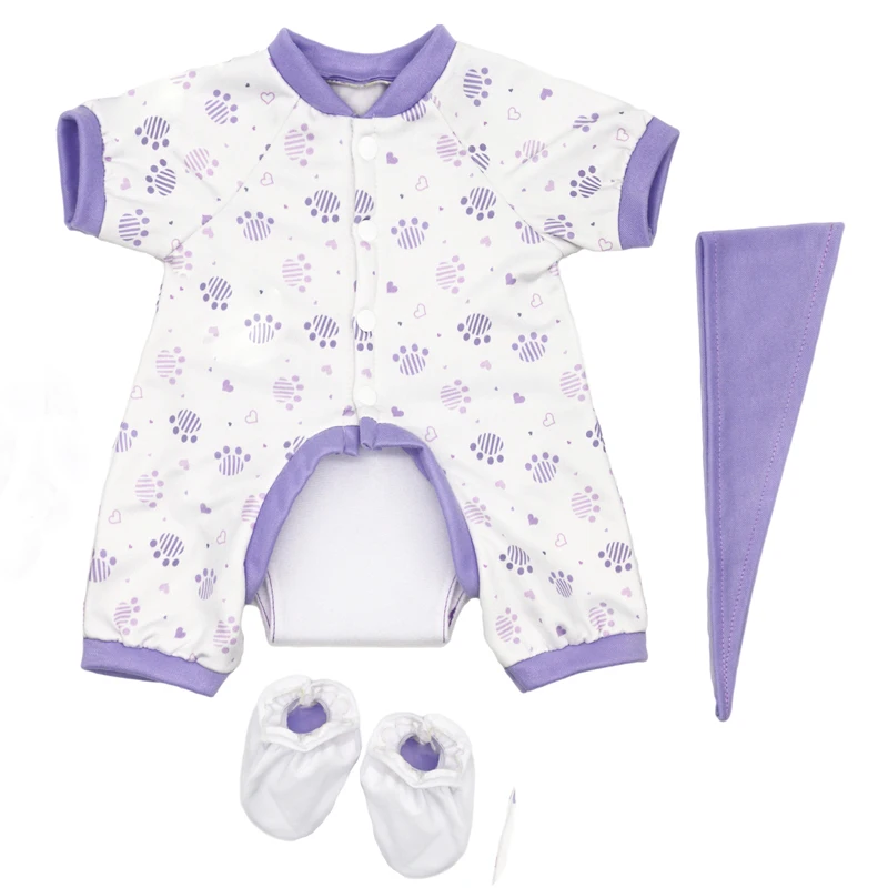 Habillez votre poupée avec la douceur de la tenue Bébé Reborn Pattes Mauve