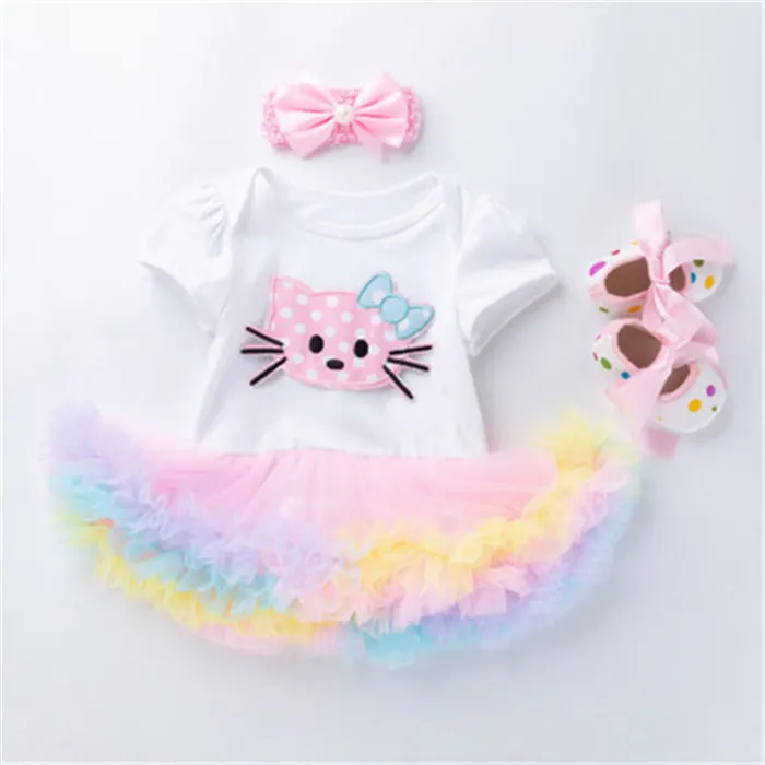 - Contenu : Body avec motif chaton, tutu multicolore en tulle et bandeau assorti