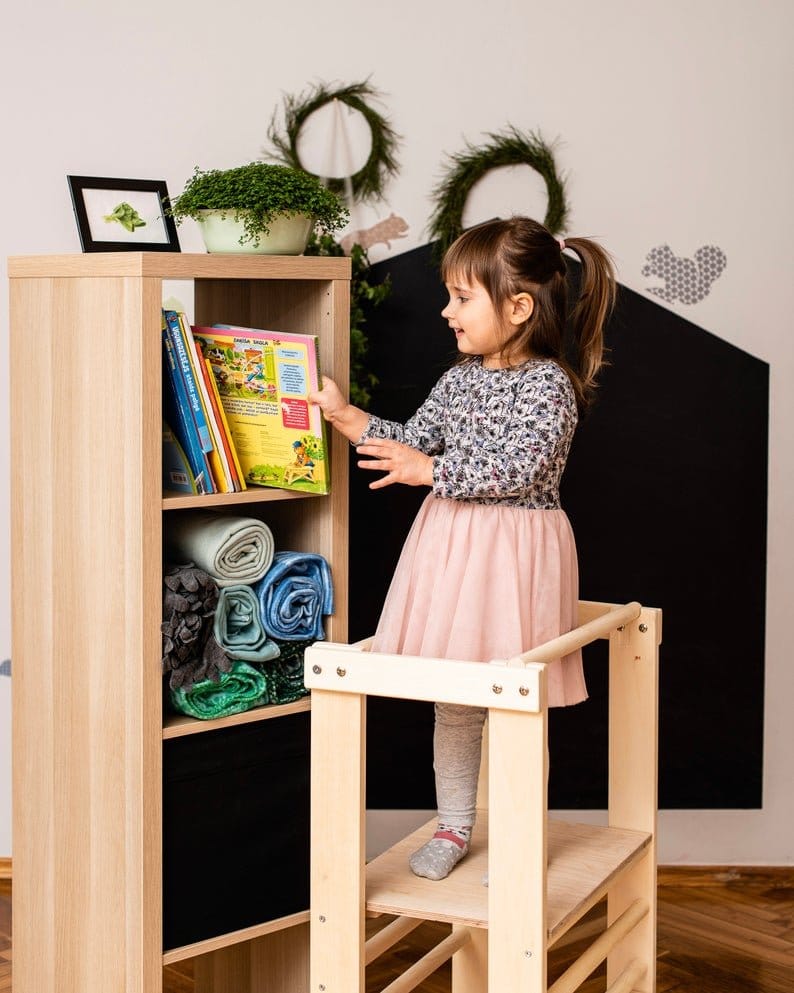 Cette chaise d’observation permettra à votre enfant de participer aux tâches de la maison, mais aussi de vous aider à préparer des repas, ranger la bibliothèque en hauteur, ou encore de faire son « travail » à son bureau.