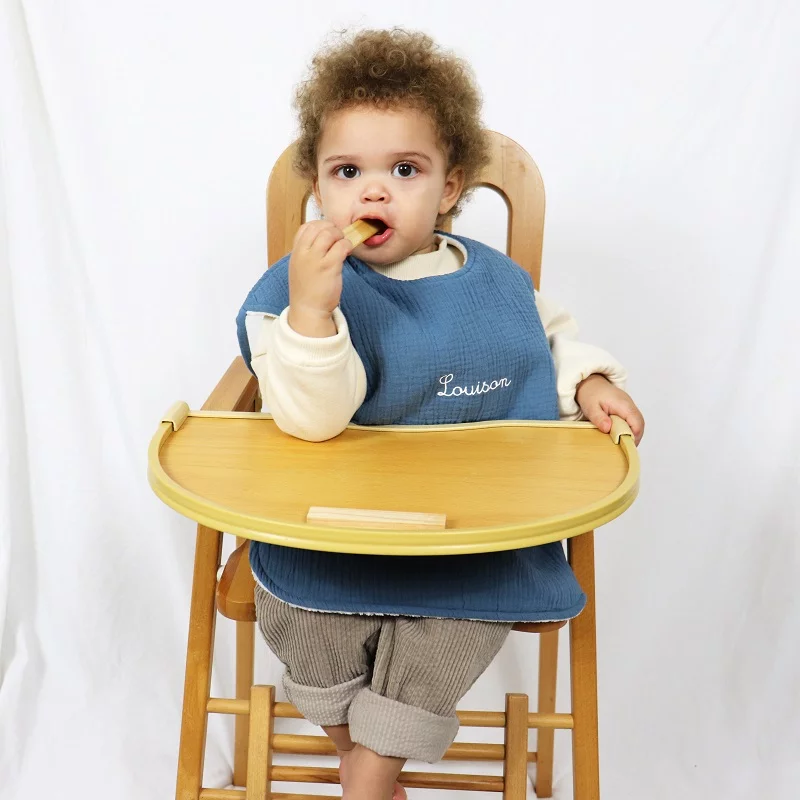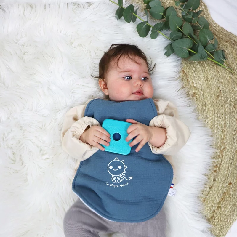 - Bavoir pour les grands : double gaze 100% coton + éponge 80% coton et 20% polyester + tissu imperméable 100% polyester