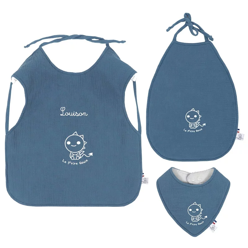 Le kit « Trio de bavoirs » est idéal pour un cadeau de naissance ! Ce kit contient : Le bavoir bandana, anti-bavouille ! Il suivra bébé partout et il restera élégant en toutes circonstances. Le bavoir évolutif restera proche de bébé durant plusieurs années grâce à sa taille généreuse ! Le bavoir pour les grands. Il est parfaitement adapté pour la découverte et l’apprentissage de la nourriture. Une couche imperméable est cachée à l’intérieur pour une excellente étanchéité. Bavoir bandana : 2 possibilités de réglages avec des boutons pressions. Bavoir évolutif et bavoir pour les grands : s’adaptent à la morphologie de bébé…