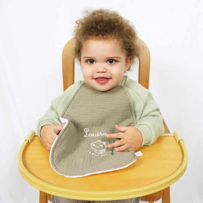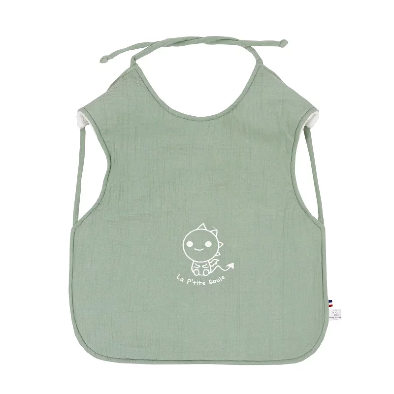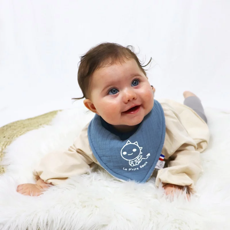 - Bavoir pour les grands : double gaze 100% coton + éponge 80% coton et 20% polyester + tissu imperméable 100% polyester