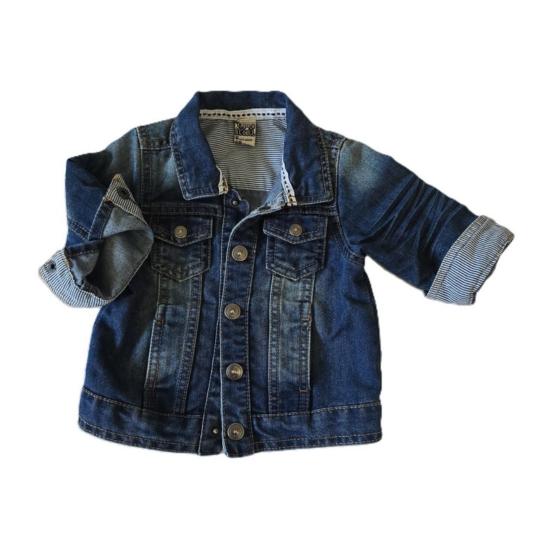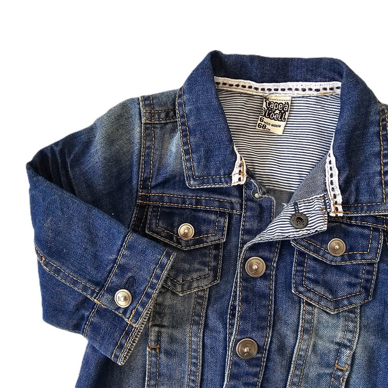 Veste bébé garçon 6 Mois TAPE A L’OEIL Veste en jean bleu coutures beige avec petites poches Fermeture pressions