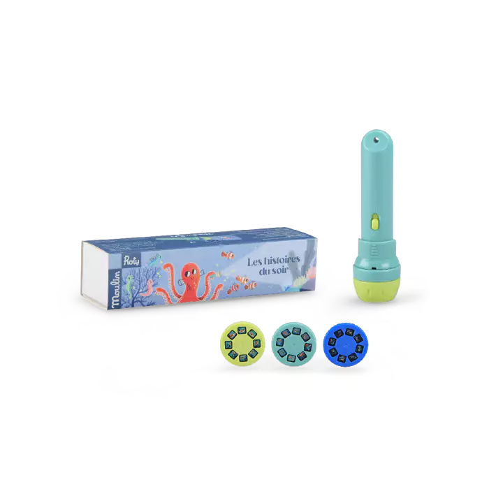 Voici une fabuleuse façon de raconter les histoires du soir … bien plus ludique qu’un livre pour les plus petits ! On se pelote dans la pénombre avec Papa ou Maman, et on projette les images des histoires directement sur les murs ou sur le plafond, tel qu’autrefois nous le faisions pour des diapositives… Pas d’écritures ! C’est au narrateur d’inventer un récit autour des images qui défilent … Ainsi un tout petit peu lui aussi raconter, puisqu’il n’a pas besoin de savoir lire ! On peut donc inverser les rôles, ce qui développe le langage et l’imagination ! De bons moments à partager avec son enfant, et un rituel rassurant pour l’apaiser avant que le sommeil ne le gagne !